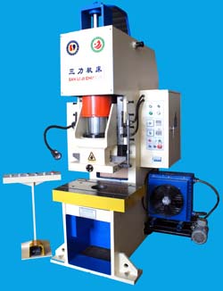 本系列机床适用于塑性材料的冲裁,拉伸和压制工艺。如:板料的冲裁、弯曲、翻边、薄板拉伸、精冲、金属零件的冷挤压。也可用于校正、压装、砂轮成形及塑料制品和粉未制品压制成形。中中中机床采用液压传动形式,具有液压机和机械压力机的优点,既能够任意改变压制力的大小,不会产生超载,又能够实现压制过程中各工步的保压和延时要求。为了实现滑块快速空程下行和快速回程的目的,机床采用了增速油缸,当接触到工件时自动转为慢速工作,减小了所需油泵的排量和电机功率,降低了噪声。工作台前方可安装光电保护装置,在工作台上前方形成保护屏障,以保护操作者的人身安全。机床为集中按钮,可以实现调整、半自动和自动三种操作规范。故本机具有结构新颖、性能可靠、功能齐全、生产效率高等优点,是机械压力机的换代新产品。